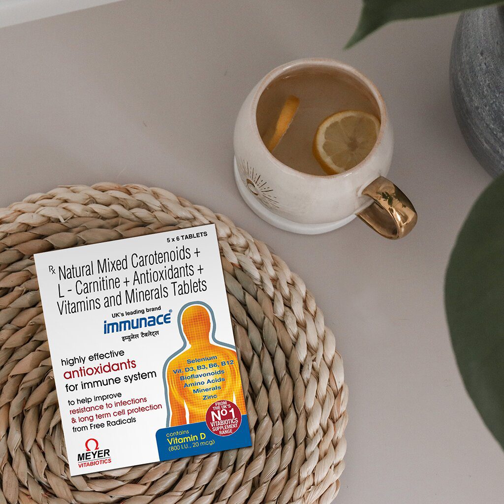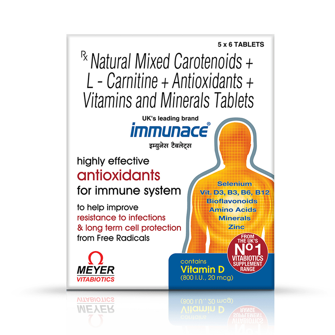 Immunace Multivitamin Tablets present a potent and all-encompassing formula enriched with vital nutrients such as L-carnitine, mixed carotenoids, Vitamin D, Zinc, and vitamin C, each playing a critical role in fortifying a resilient immune system. Additionally, the incorporation of Ginseng extracts ensures building the required energy, optimizing your body’s overall functionality. Embrace advanced nutrition throughout the year with Immunace, providing your immune system with targeted support and comprehensive care it deserves.