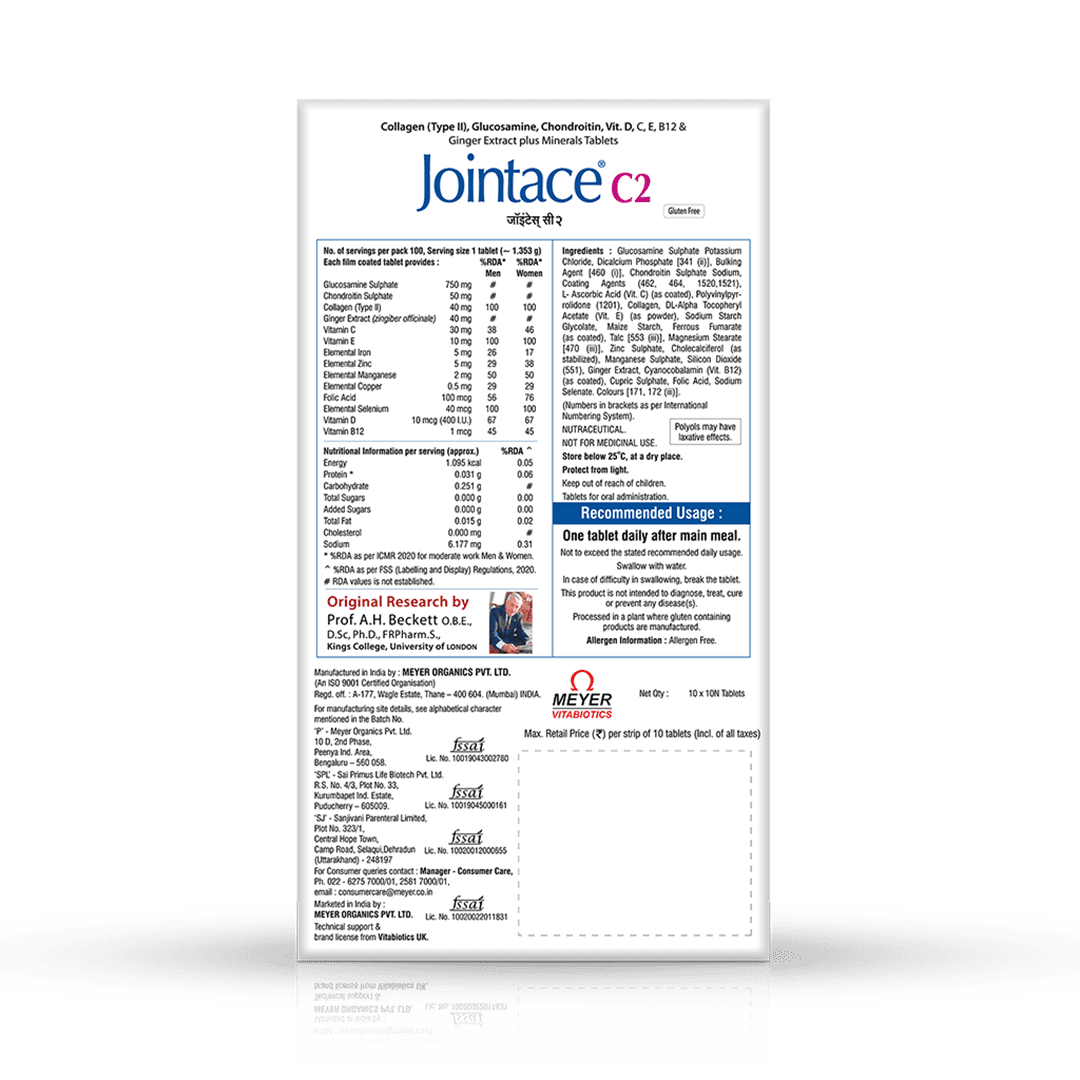Jointace C2 has an added advantage of Vitamin D3 that helps in the management of Osteoarthritis.