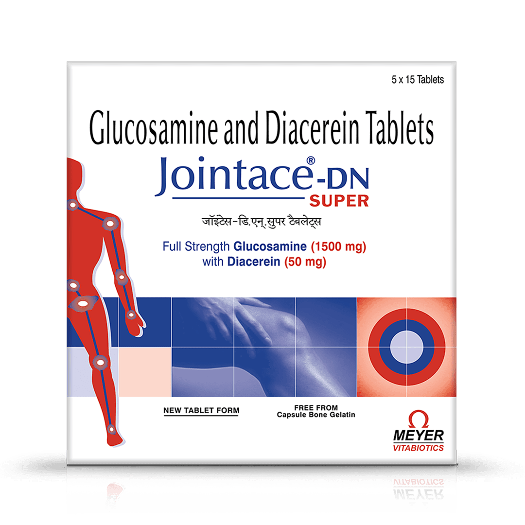Jointace-DN Super Tablet is a combination of two medicines. It is used in the treatment of osteoarthritis. It reduces pain and swelling by reducing inflammation. It also reduces friction in the joints and makes physical movements more comfortable and pain free.