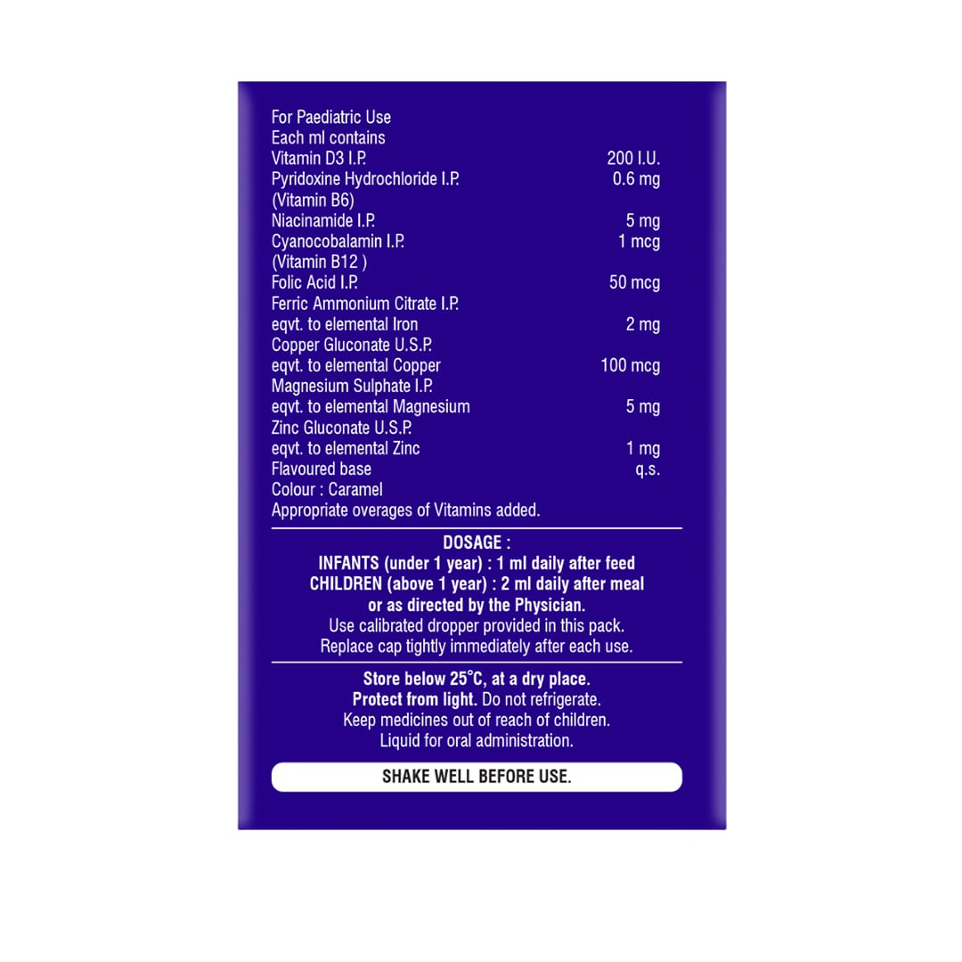 A nutritional supplement designed for infants and babies aged 624 months. Formulated to improve overall health and wellness in children. It is a multivitamin and multimineral supplement that aims to provide essential nutrients for proper growth and development. The drops help in case of functional fatigue and poor concentration.