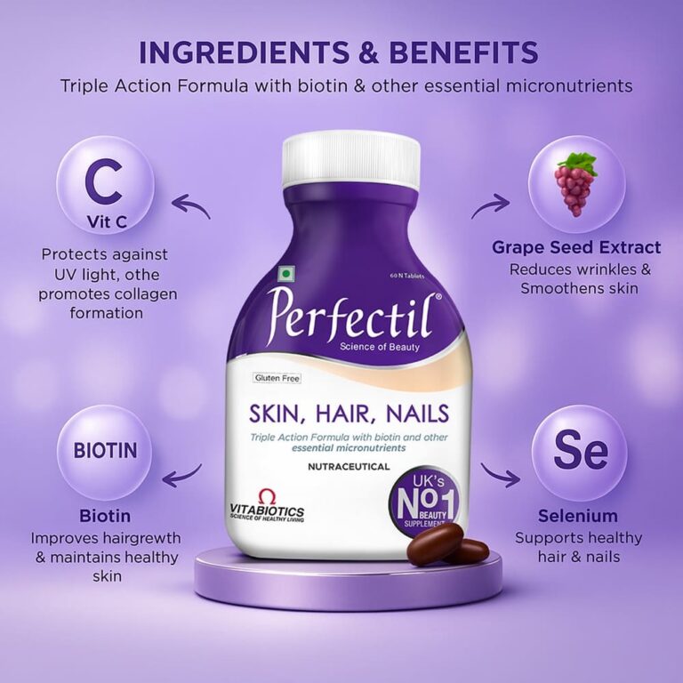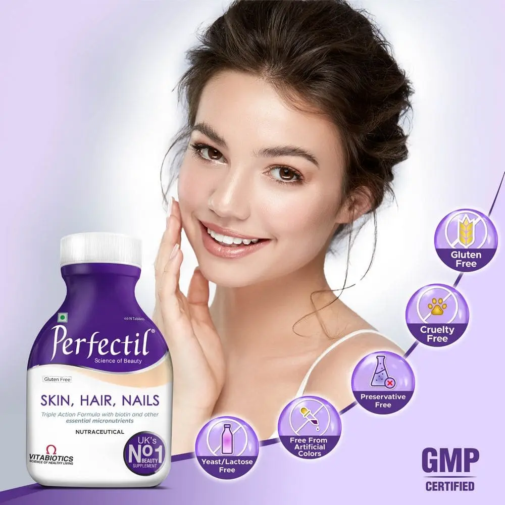 Perfectil gives you the nourishment within the body where beauty begins with triple active support of biotin, zinc & selenium along with grape seed extract for perfect skin, hair and nails. Perfectil is also the UK’s No.1 beauty supplement brand from the best multivitamin company that is now available in INDIA.