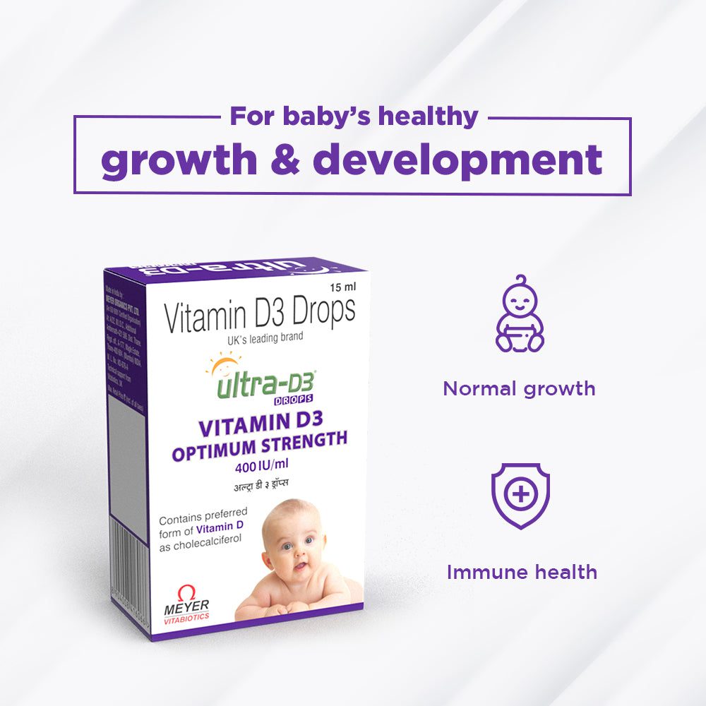 Ultra-D3 400 IU Oral Drops is formulated to provide vitamin D3 to growing children to help support bone and teeth formation and health. It contains the preferred form of vitamin D as cholecalciferol. It prevents vitamin D deficiency and boosts immunity. It also supports the normal growth and development of the child.