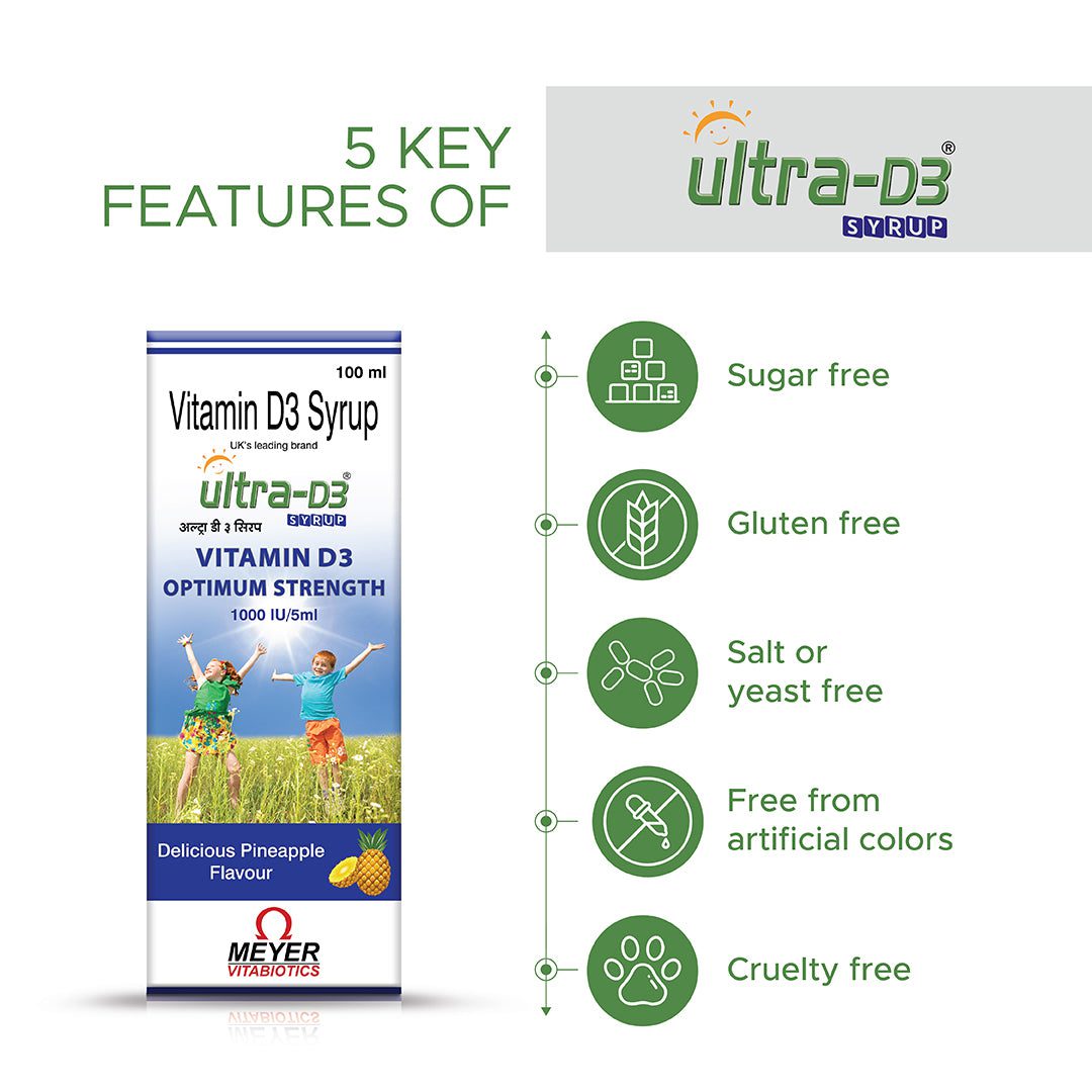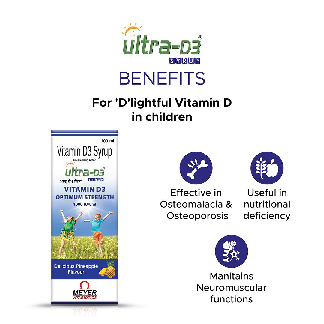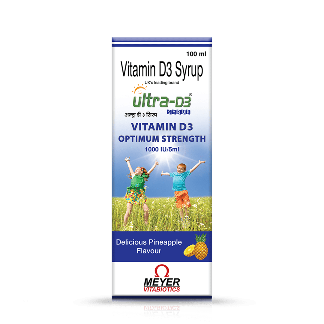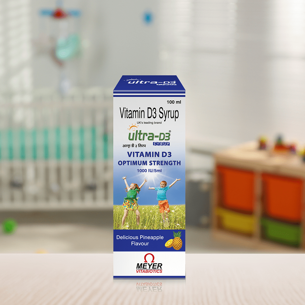 Ultra D3 syrup(Vitamin D3) plays a crucial role in infants’ growth and development. Vitamin D is essential for the proper formation of bones and teeth, as it helps the body absorb calcium and phosphorus. Adequate Vitamin D intake is especially important during infancy when bones are rapidly growing. It also supports the immune system, promoting overall health and reducing the risk of infections.